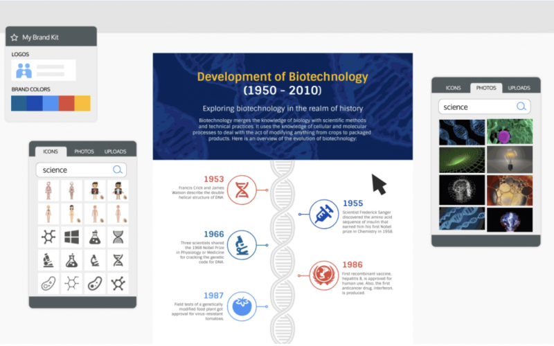 This is an easy-to-use timeline creation tool that lets you create beautiful visual infographics. You can use this tool to create timelines for various purposes, including product launches, internal team meetings, business presentations, and school projects. You can use this tool to create timelines for history, marketing projects, business presentations, and many more.