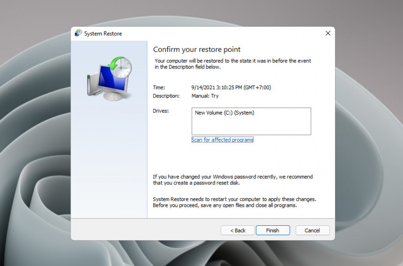 Therefore, if you want to use system restore, make sure you have created a restore point when Windows 11 is in a stable state, for example when you just finished a fresh install.