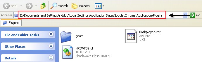 C:Documents and SettingsuserLocal SettingsApplication DataGoogleChromeApplicationPlugins