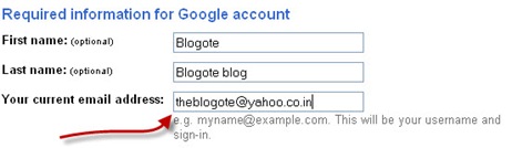 2. Enter your yahoo, MSN or any email account address which you are currently using.